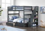 Introducing the Bunk Bed Grey-B 1856, a high-capacity double-over-double bunk system that combines robust Mission-style construction with contemporary grey styling. Designed for versatility and strength, this solid wood bed features a reversible staircase with integrated shelves and supports optional add-ons, creating a durable, space-efficient, and customizable sleep solution perfect for shared adult rooms, vacation homes, or high-demand family spaces.
